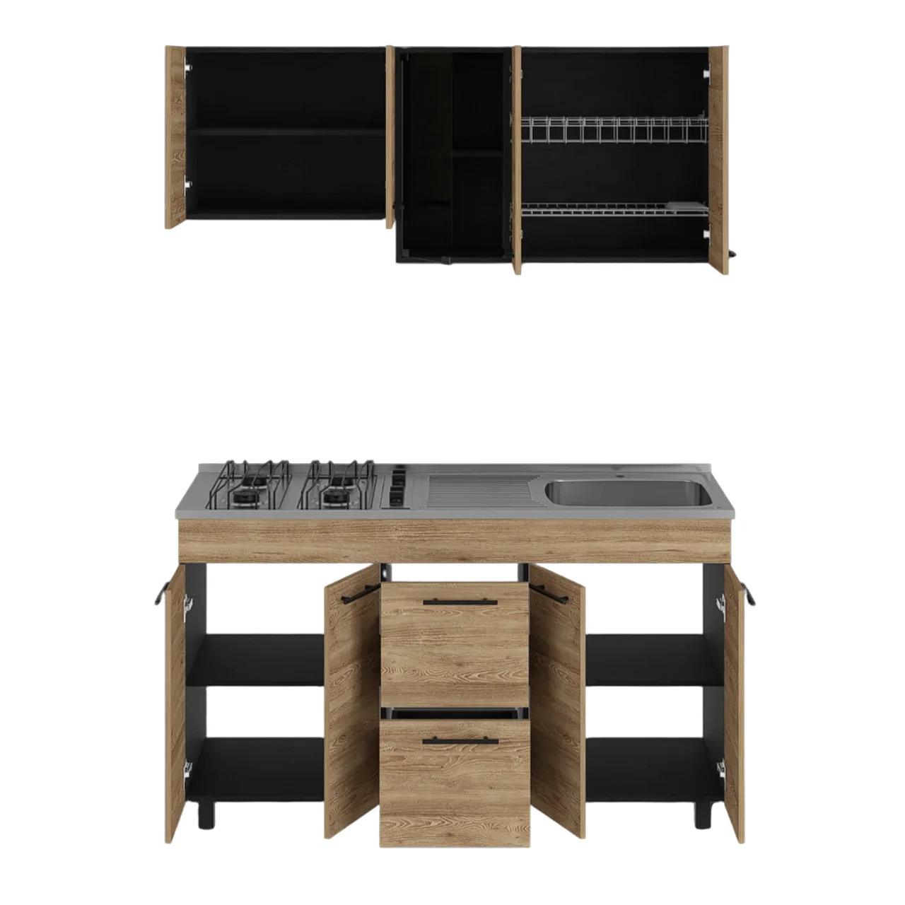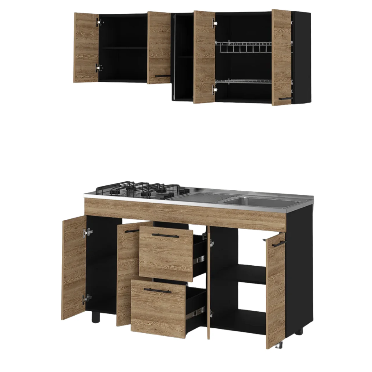 👉 Mueble de cocina moderno con fregadero, estufa y alacena. Diseño en madera rústica, elegante y funcional para mantener tu cocina organizada.
