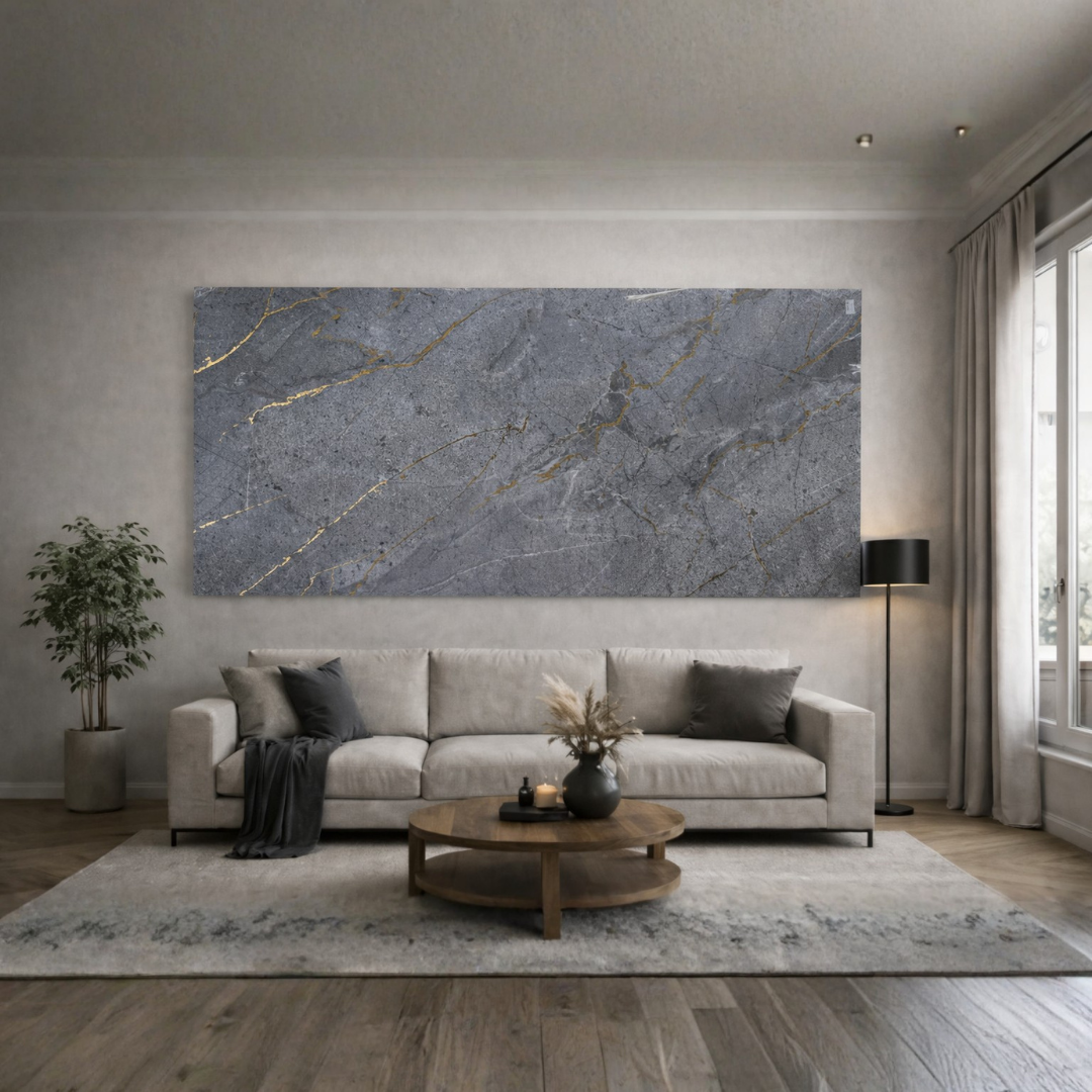 La Lámina PVC Grafito Veta Dorada presenta un diseño tipo piedra en tono grafito con delicadas vetas doradas que aportan profundidad y sofisticación. Ideal para decoración interior en hogares, oficinas y comercios, transforma cualquier espacio con un estilo moderno y elegante.