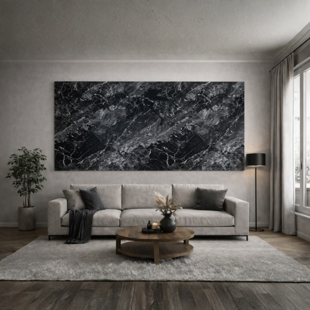La Lámina PVC Gris Oscuro Veta Dorada combina un diseño tipo mármol oscuro con sutiles vetas doradas que aportan profundidad, lujo y sofisticación a cualquier espacio. Ideal para decoración interior en hogares, oficinas y comercios, transforma ambientes comunes en escenarios modernos y elegantes.