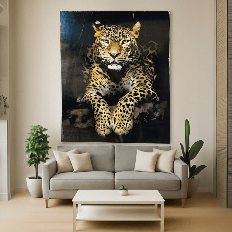 Esta pieza de arte, que captura la mirada intensa y la gracia felina de uno de los depredadores más fascinantes de la naturaleza, es el complemento perfecto para aquellos que buscan añadir un toque de audacia y estilo único a su hogar u oficina.