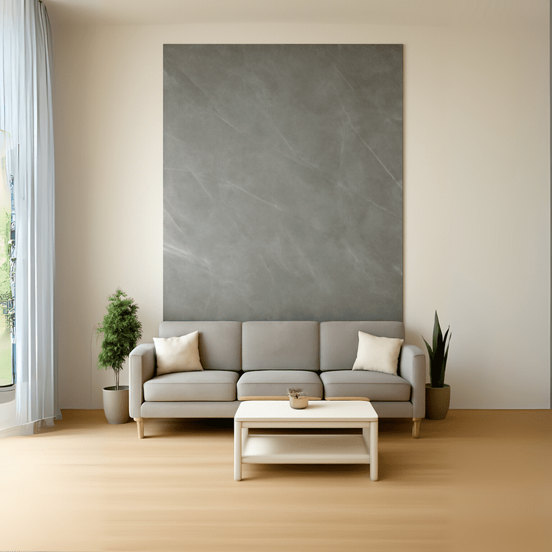 Esta elegante lámina decorativa destaca por su diseño sobrio y contemporáneo en tono gris con delicadas vetas blancas, ideal para aportar profundidad y estilo a cualquier ambiente interior.