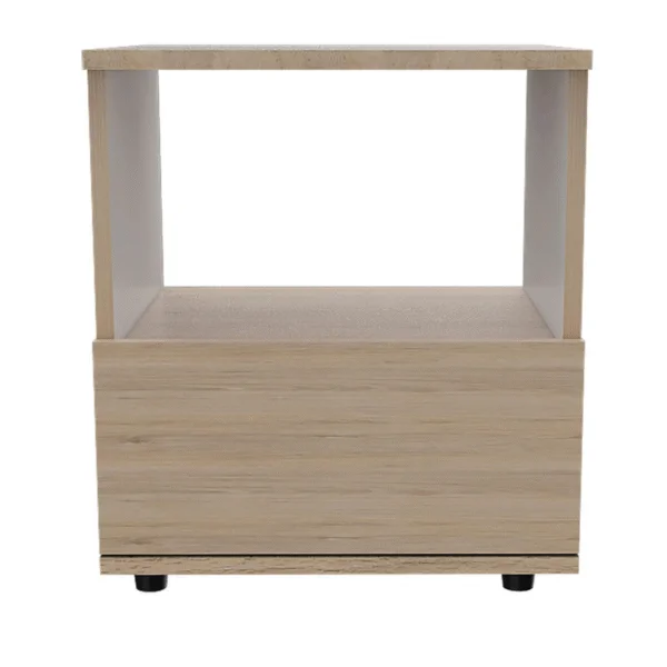 Mueble Moderno de Velador Camel combina estilo moderno y practicidad en un diseño compacto. Su acabado en rovere claro aporta calidez y elegancia, ideal para complementar tu habitación y mantener todo a mano.