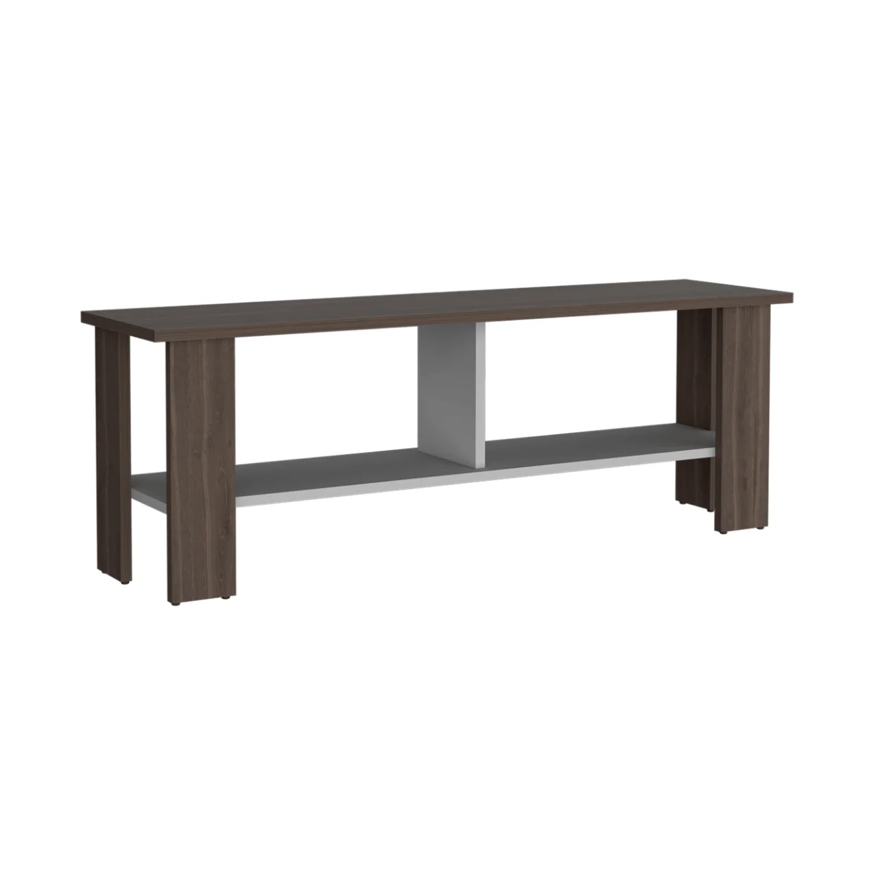 Mueble para TV moderno Navia ideal para sala o dormitorio es un mueble moderno que combina la calidez del acabado Milano con la frescura del blanco. Su diseño funcional con compartimentos abiertos te permite organizar fácilmente libros, consolas y objetos decorativos, mientras disfrutas de un soporte elegante y resistente para tu televisor.