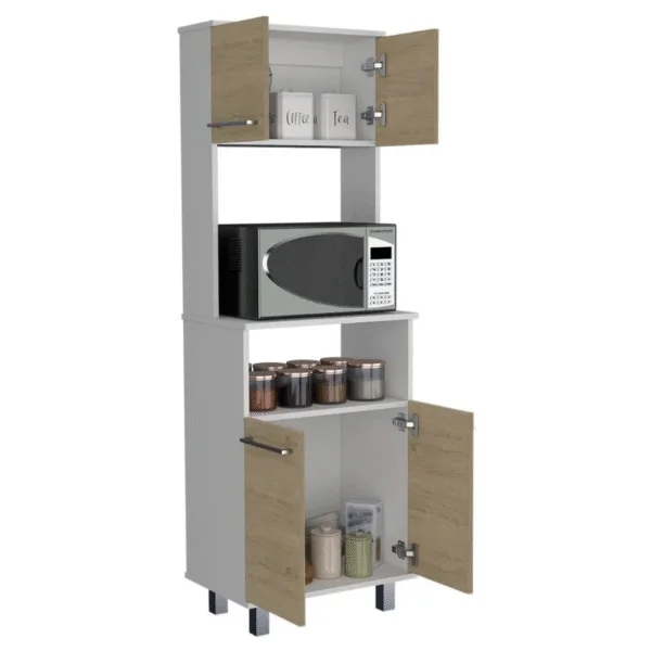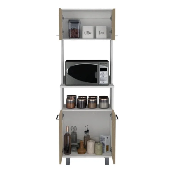 Mueble Cocina Alacena Fenix compacto y moderno para microondas. Su diseño en blanco con puertas en tono madera ofrece estilo y almacenamiento extra en tu cocina.