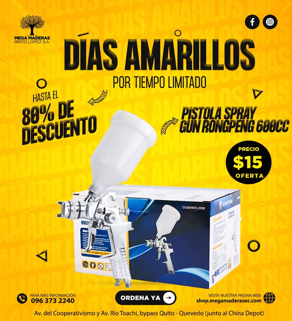 Hidrolavadora con motor uyustools Recubrimiento tipo Roca Blanco Pistola spray gun rompeng 600cc$15.00 IVA Incluido Pistola spray gun rompeng 600cc cantidad Añadir al carrito Agregar a lista de deseos Agregar a lista de deseos Categoría: PROMOCIONES DÍAS AMARILLOS Compare Productos relacionados Pintura: Viniltex latex Satinado Blanco base deep $24.99 IVA Incluido Añadir al carrito Agregar a lista de deseos Agregar a lista de deseos ¡Oferta! Ingleteadora 1800W marca Total $335.99 Original price was: $335.99.$230.00Current price is: $230.00. IVA Incluido Añadir al carrito Agregar a lista de deseos Agregar a lista de deseos Recubrimiento tipo roca BLANCO hueso $15.50 IVA Incluido Añadir al carrito Agregar a lista de deseos Agregar a lista de deseos Hidrolavadora con motor uyustools $180.00 IVA Incluido Añadir al carrito Agregar a lista de deseos Agregar a lista de deseos