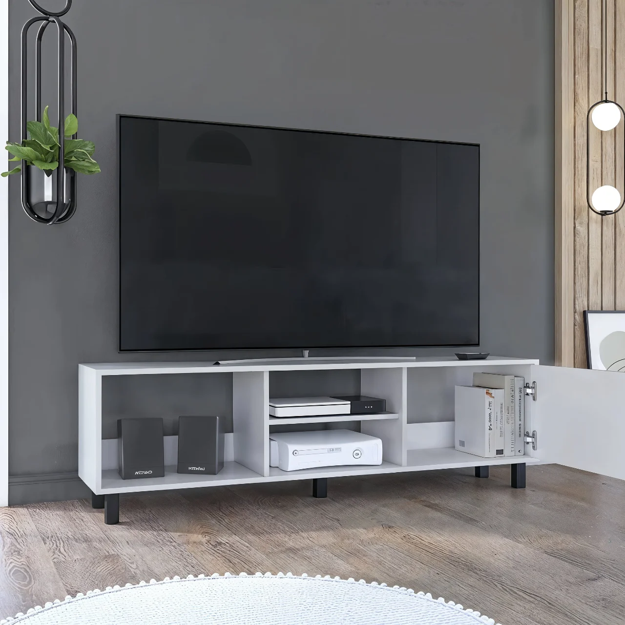 Dale un aire moderno y elegante a tu sala con el Mueble Modular Para TV Túnez Plus. Su diseño minimalista en color blanco se adapta a cualquier estilo de decoración, mientras que sus compartimentos abiertos y puerta lateral ofrecen el espacio perfecto para organizar consolas, parlantes, libros o accesorios de entretenimiento.