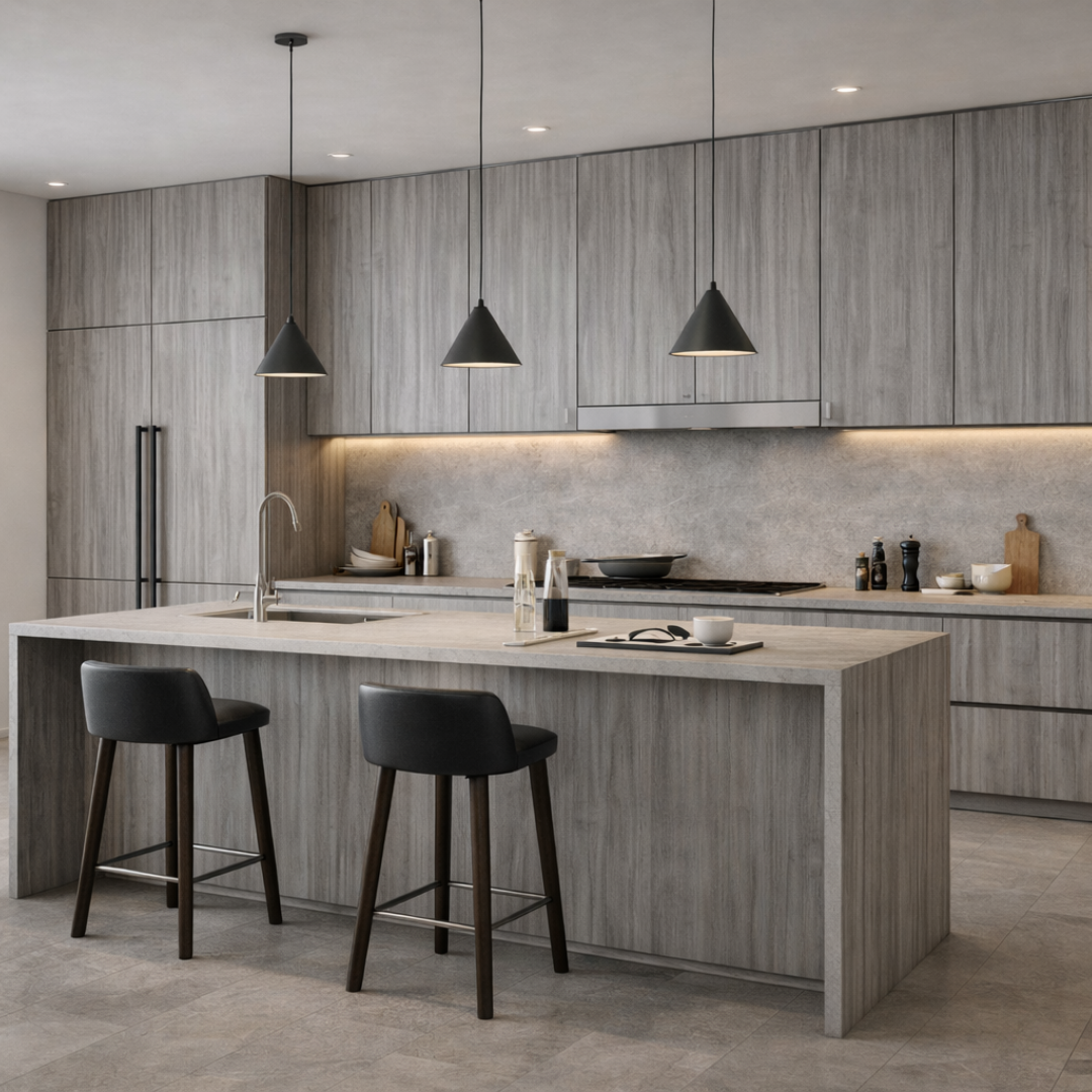 Dale un toque moderno y sofisticado a tus espacios con el RH IMPOR CENIZO, un diseño en tono gris tipo madera que transmite elegancia y equilibrio. Perfecto para ambientes contemporáneos, combina estilo con funcionalidad gracias a su resistencia a la humedad, ideal para muebles duraderos y de alto impacto visual.